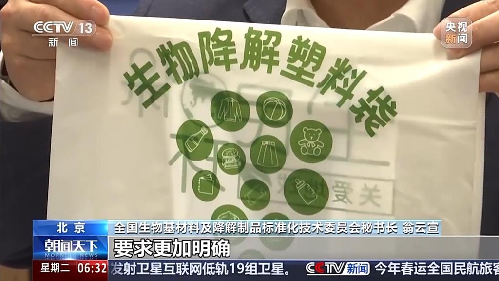 大陸生物基材料及降解製品標準化技術委員會祕書長翁雲宣稱,有些購物袋上面標識的是降解,但沒有說明成分,就不是真正生物降解。新國標針對這一情況,完善生物降解塑膠購物袋的產品標識,明確生物降解性能標識圖案和文字內容,方便消費者辨識及產品監督管理。